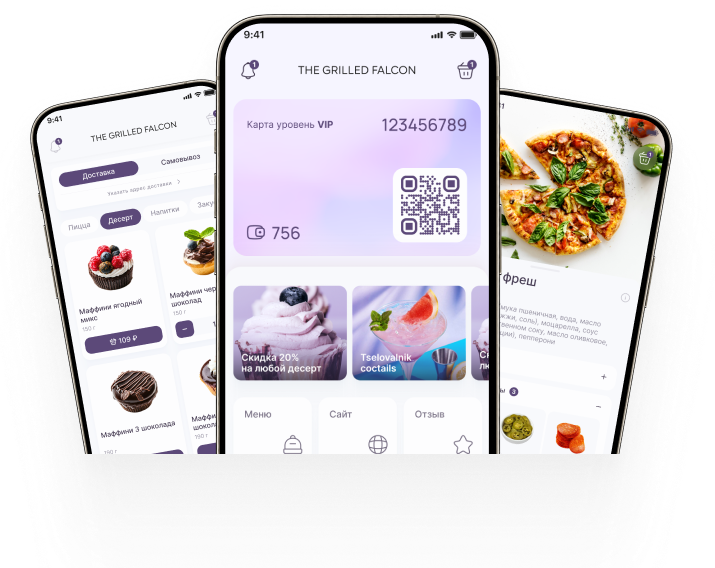 Электронная карта лояльности в телефоне гостя. Помогает ресторанам повышать продажи, собирать данные о визитах и предпочтениях для персонального сервиса и коммуникации с гостями.